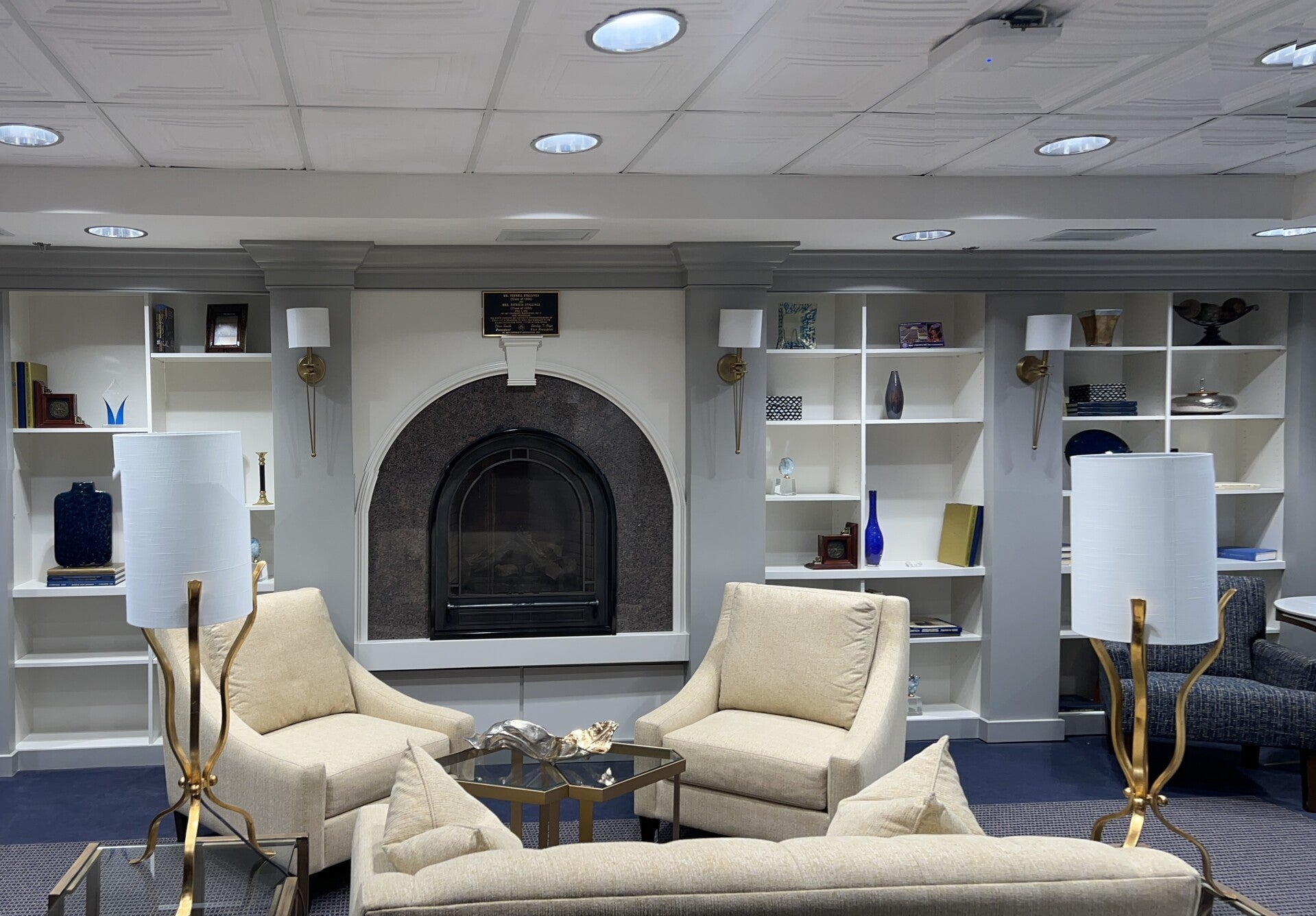 The Library is a 1,392-square-foot space that can accommodate up to 10 guests in a cozy, intimate setting.